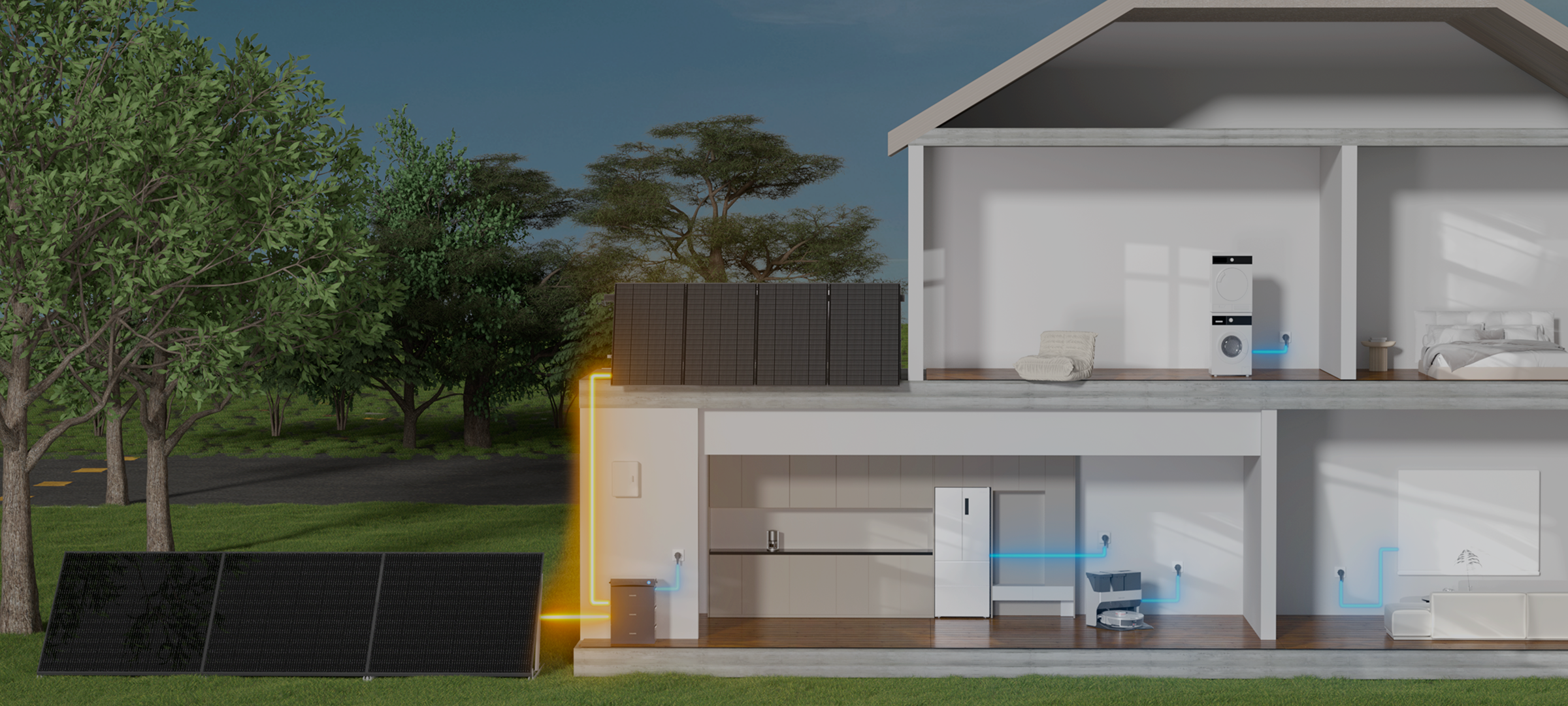 Store daytime solar energy to keep your lights, Wi-Fi, and evening essentials running after sunset.