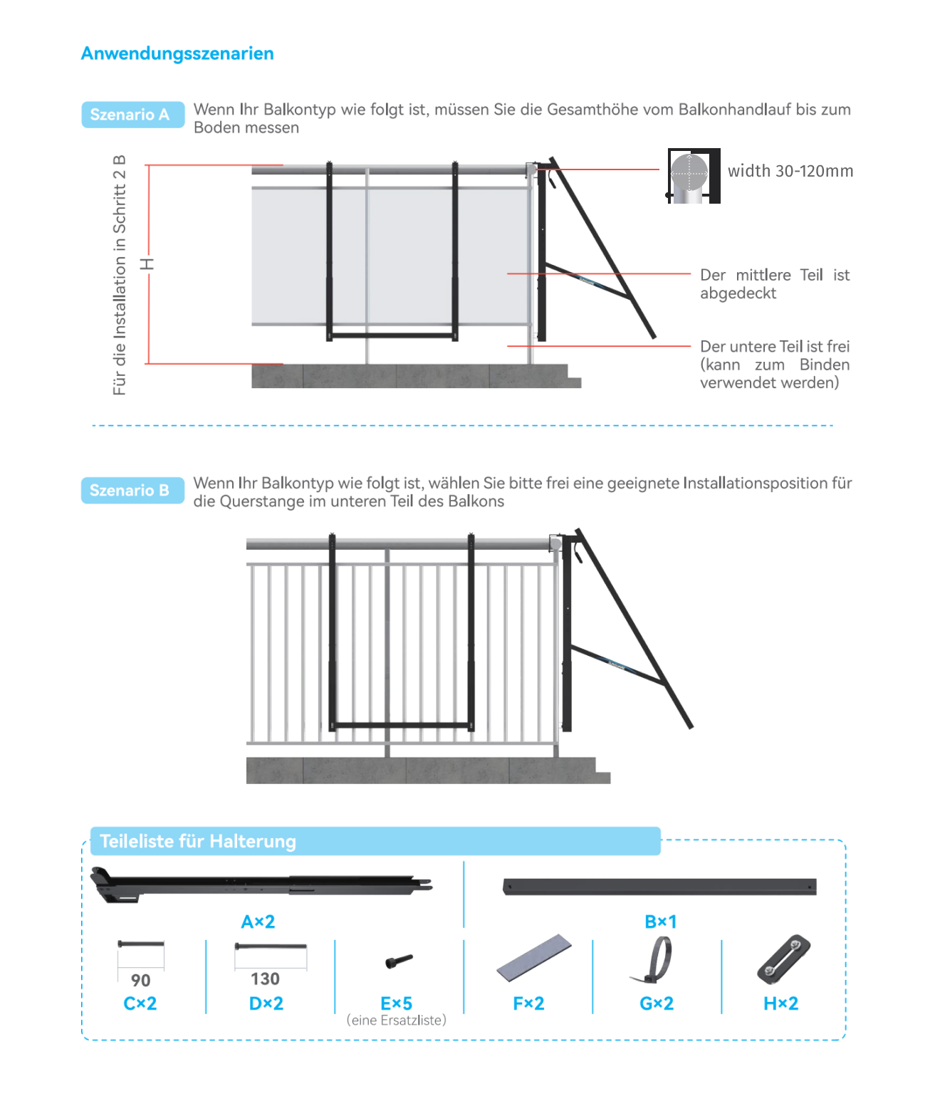 - Suitable for concrete balconies with a wall thickness of 70–170 mm