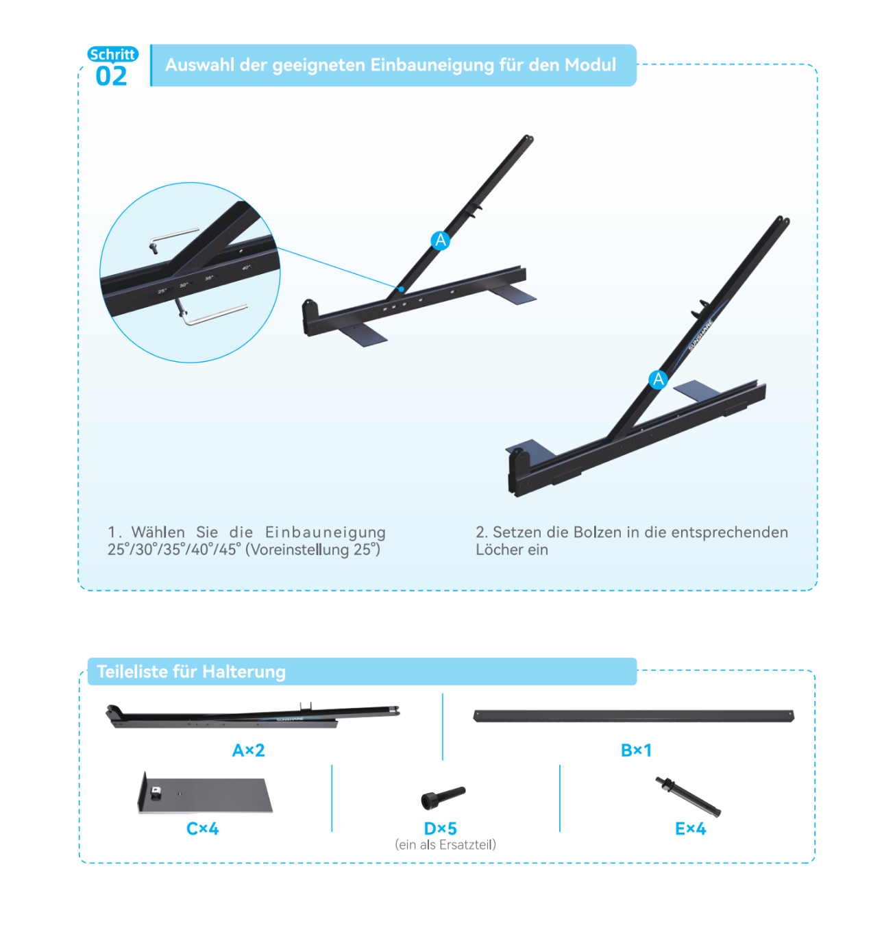 - Adjustable angle 10°–30°, ensuring the optimal tilt for maximum solar generation